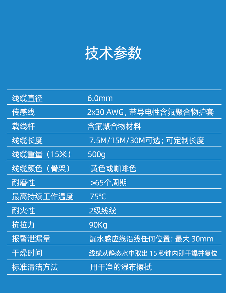 報警泄漏量(自來水)泄漏感應(yīng)線沿線任何位置:最大30mm
