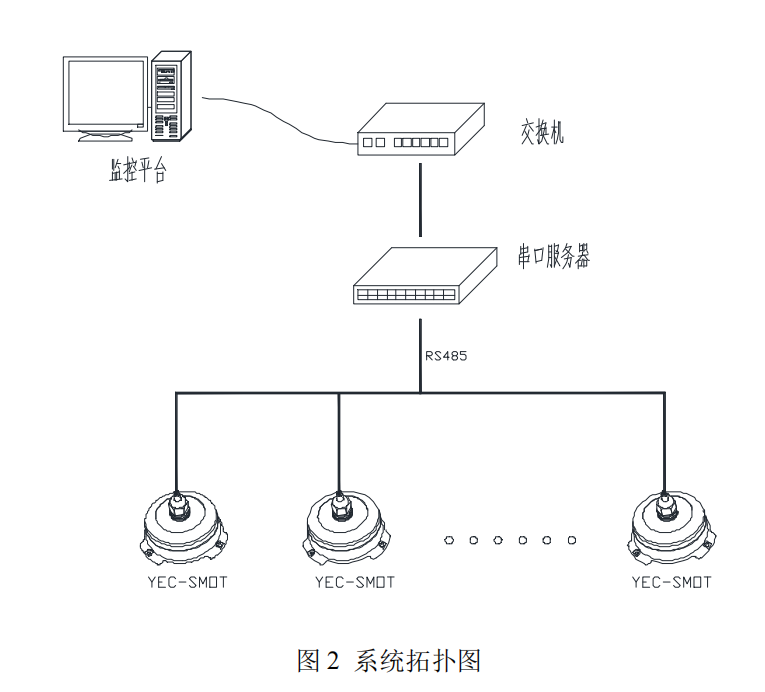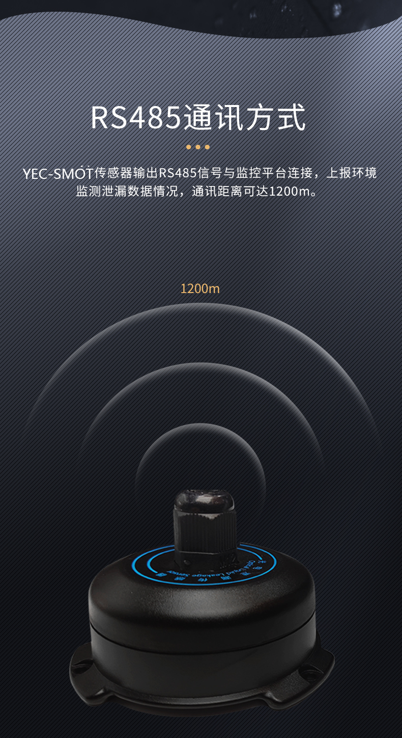 YEC-SMOT 傳感器安裝于漏液監(jiān)測(cè)區(qū)域,當(dāng)檢測(cè)到液體泄露時(shí),通過(guò) RS485 信號(hào)上傳泄漏數(shù)據(jù)至監(jiān)控平臺(tái),實(shí)現(xiàn)實(shí)時(shí)集中監(jiān)控。