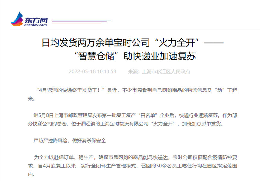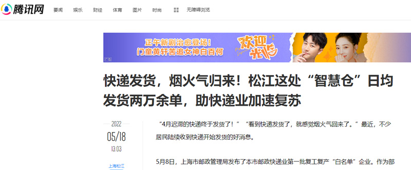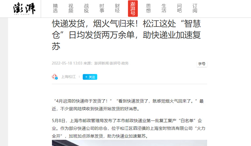 截至5月20日,人民網(wǎng)、科技日?qǐng)?bào)、澎湃新聞、新浪財(cái)經(jīng)、東方網(wǎng)、上觀新聞、上海熱線、看看新聞、騰訊網(wǎng)、松江區(qū)人民政府、界面新聞、第一財(cái)經(jīng)、搜狐網(wǎng)、網(wǎng)易等一大波知名媒體陸續(xù)轉(zhuǎn)載中……