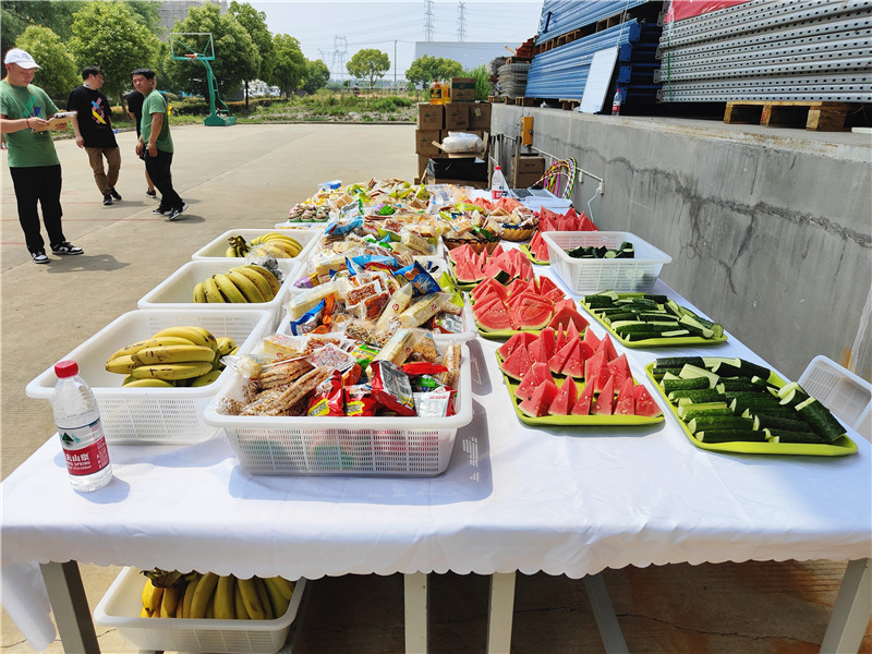 中場休息,人事行政部為小伙伴們提供了充足的能量和口感享受,包括礦泉水,西瓜、香蕉、面包、蛋糕、小零食等滿滿一大桌美食,讓大家在運動中能夠得到充分的補給和休息,保證了運動會的順利進行和參與者的身體健康。