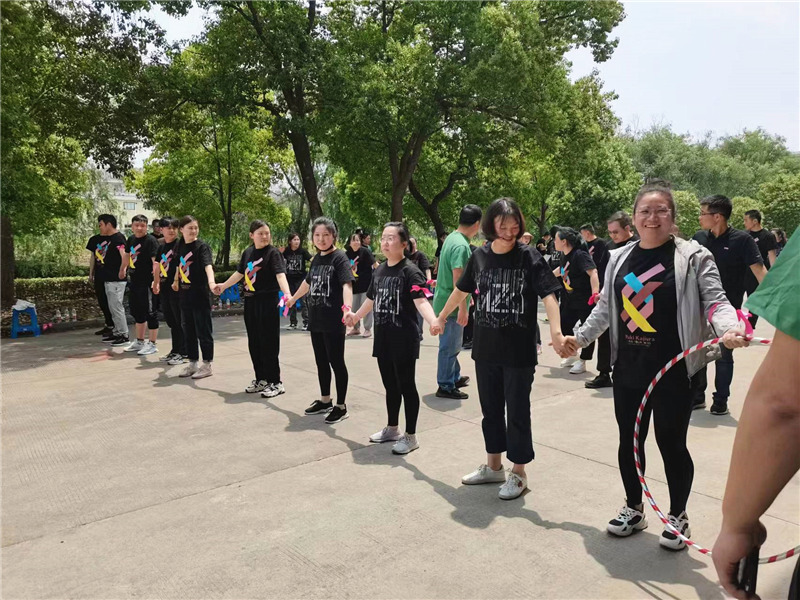 最后是全隊共同參與的一圈到底比賽,非常的考驗團隊協(xié)作能力,每隊隊員手拉手排成縱隊,在緊密的配合下,順利將呼啦圈從左往右再從右到左的順序,用呼啦圈穿過所有人的身體回到原位。最終,橙隊以最短的時間獲得勝利。