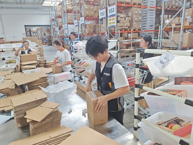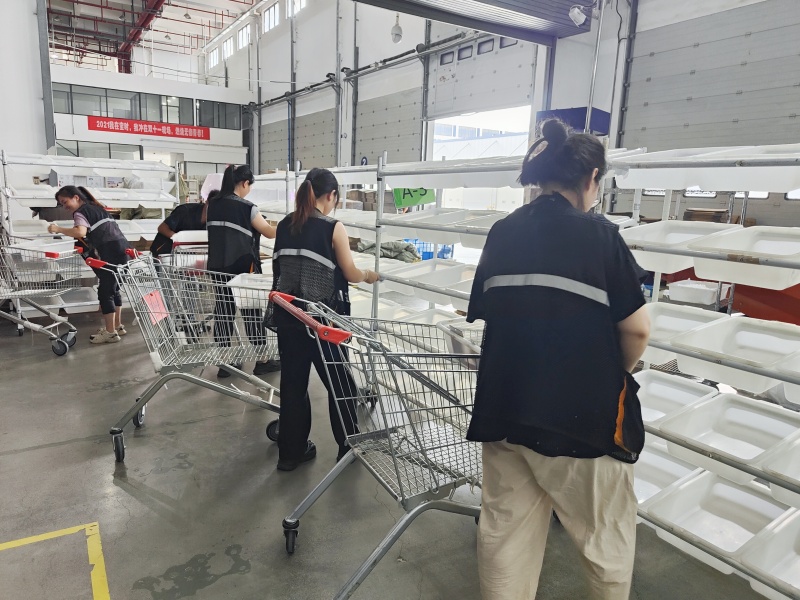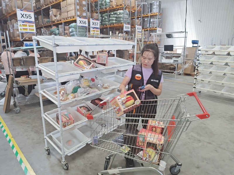 緊接著的分撥環(huán)節(jié),根據(jù)訂單要求,將商品有條不紊地進行分揀操作。
