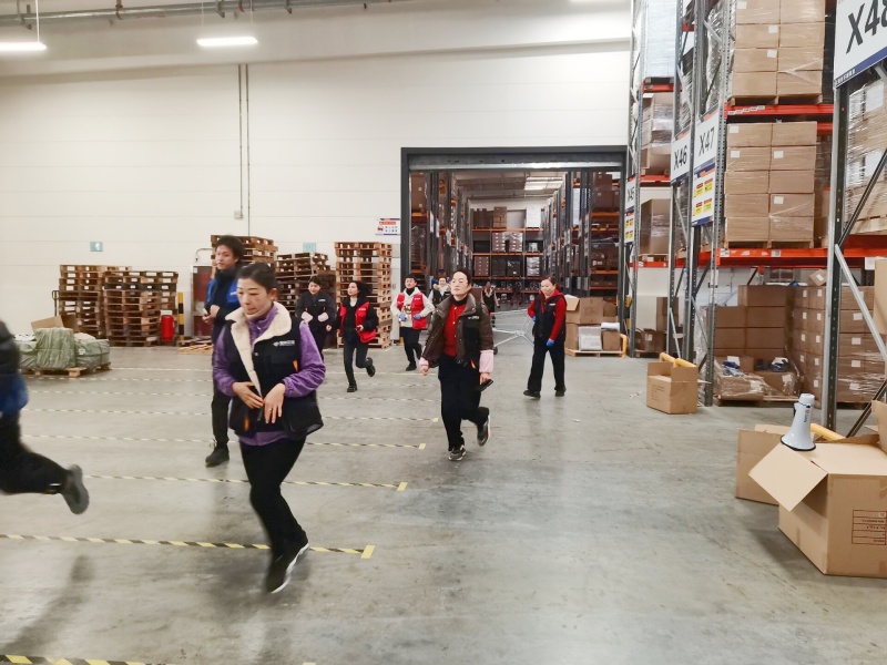 短短幾分鐘內(nèi),所有員工便成功從各倉(cāng)庫(kù)的不同區(qū)域疏散至空曠的安全地帶,集合點(diǎn)名,全員到齊,充分展現(xiàn)出平日里扎實(shí)的應(yīng)急疏散訓(xùn)練成效。