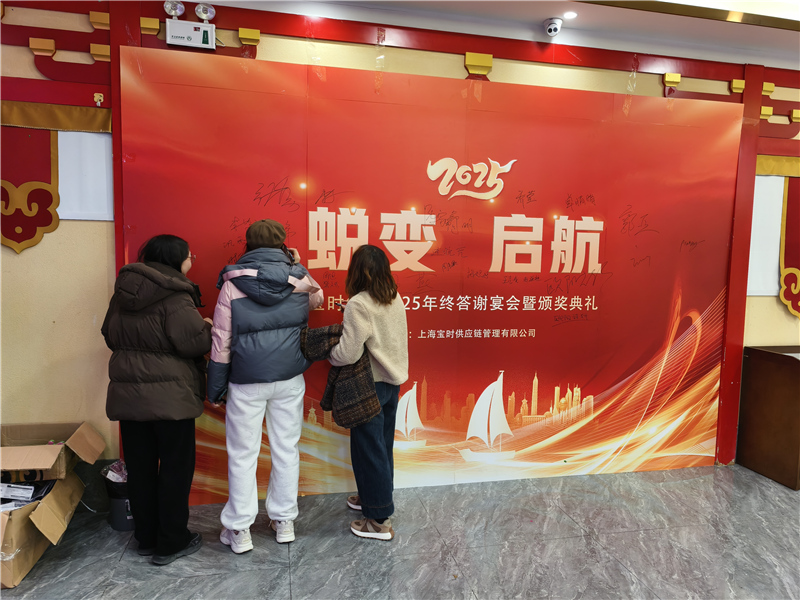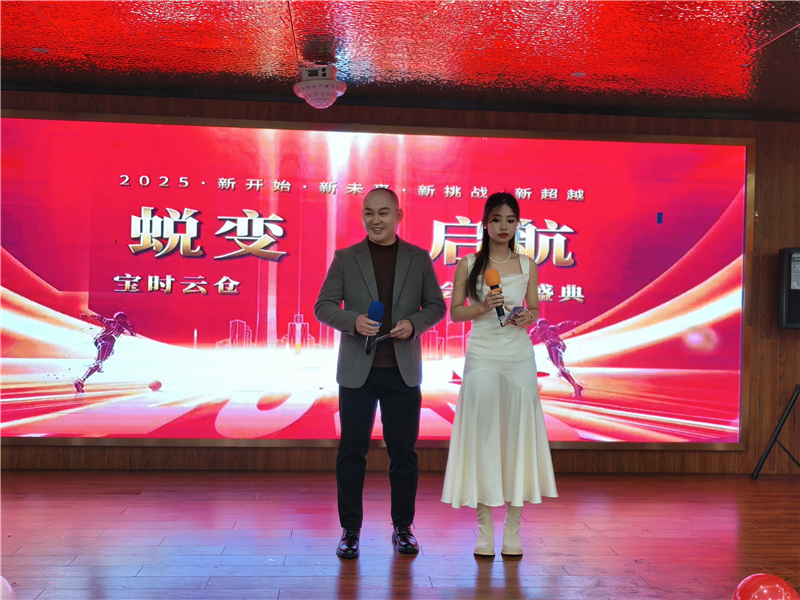2025 年 1 月 12 日,在上海松江區(qū)江南婆婆宴會廳,寶時云倉成功舉辦了一場熱鬧非凡的年會暨表彰大會?!巴懽?啟航” 這一主題貫穿始終,寶時云倉全體員工在此齊聚一堂,共同回顧過去一年的奮斗歷程,展望充滿希望的新一年。