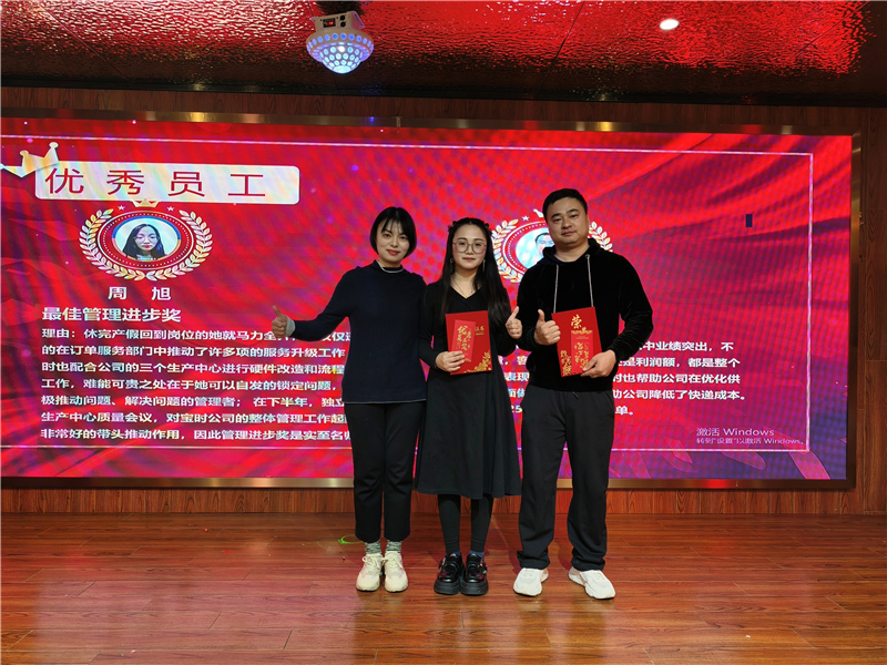 年會的最后一部分是優(yōu)秀員工頒獎環(huán)節(jié)。公司對在過去一年中表現(xiàn)突出的員工進(jìn)行了表彰,頒發(fā)了多個獎項(xiàng),包括優(yōu)秀員工獎、優(yōu)秀班組獎等等。獲獎員工們上臺領(lǐng)獎,他們的臉上洋溢著自豪與喜悅。這一刻,他們不僅是個人榮譽(yù)的獲得者,更是寶時云倉大家庭的驕傲和榜樣。