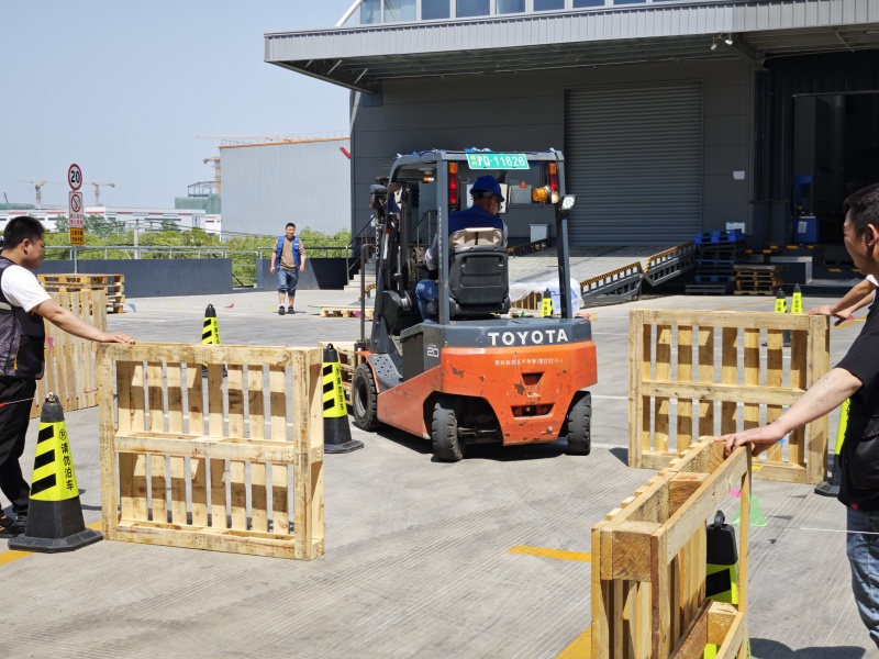 實(shí)操比拼則設(shè)置了載貨過(guò)障礙、精準(zhǔn)堆垛、寬貨過(guò)窄門(mén)三大項(xiàng)目,聚焦日常作業(yè)中的核心場(chǎng)景。